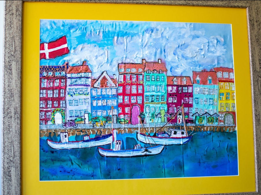 D-389 AN ORIGINALSILK PAINTING by CYDNEY HOP'EN IN THE COPENHAGEN, DENMARK