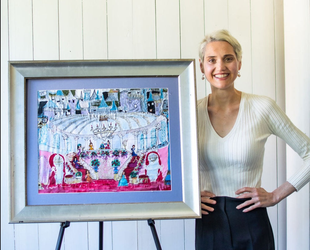 Created by Cydney and painted on silk.  The creative joy and humour of the artist radiates and celebrates with colour and imagination.