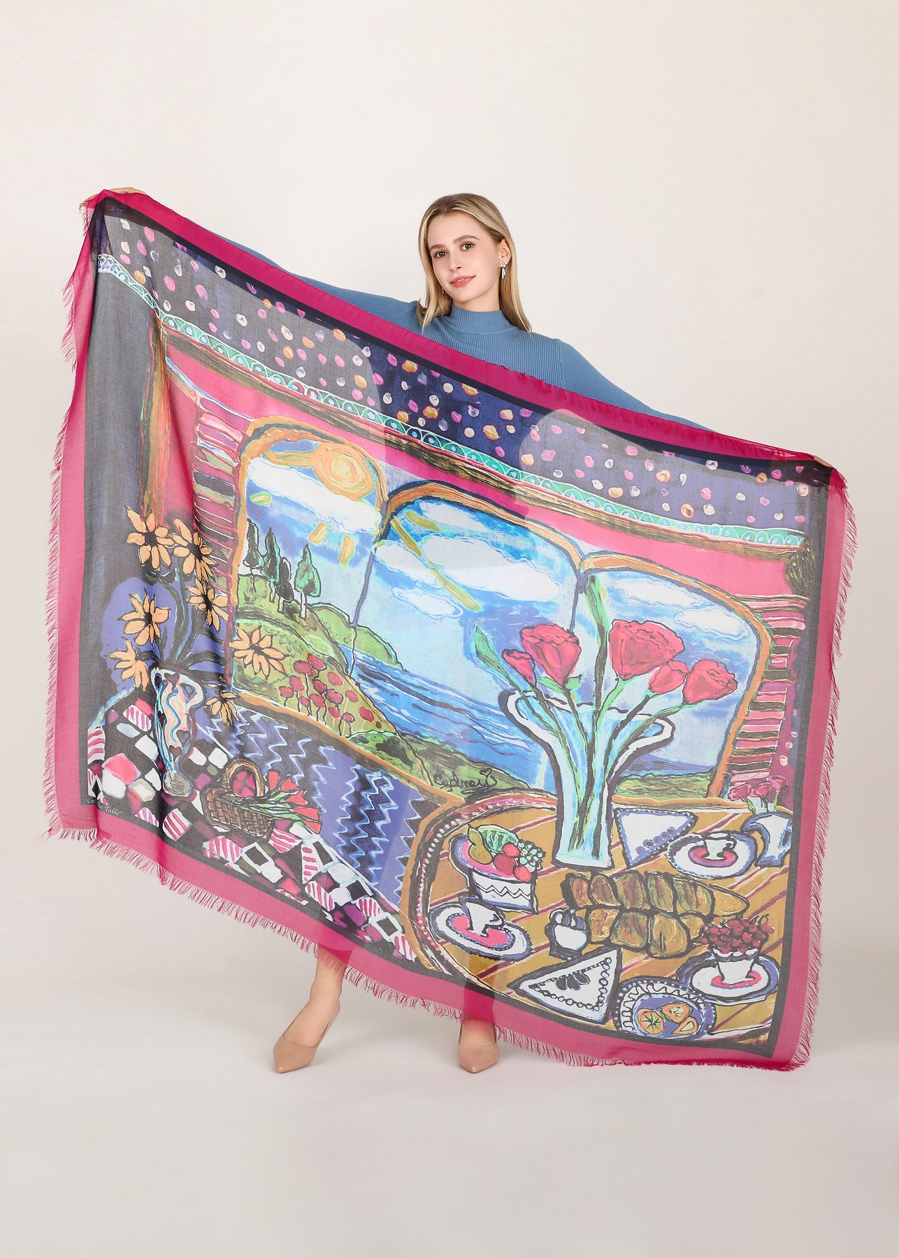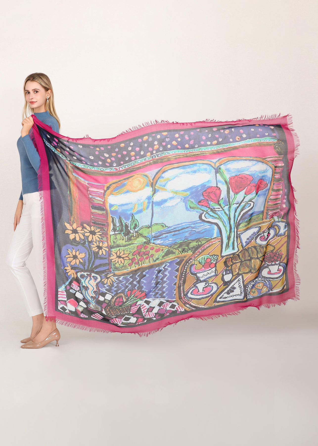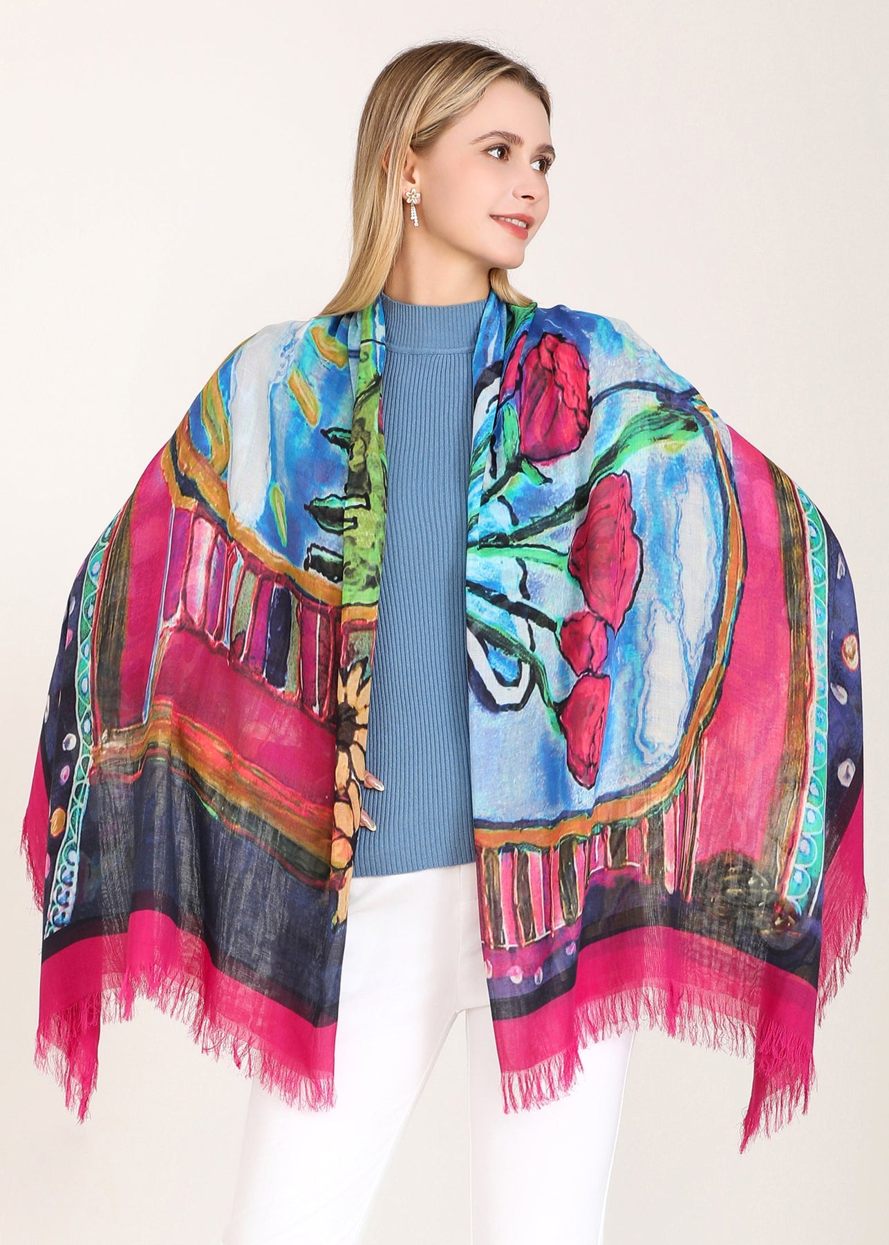 Luxury hand painted forever silk shawl: