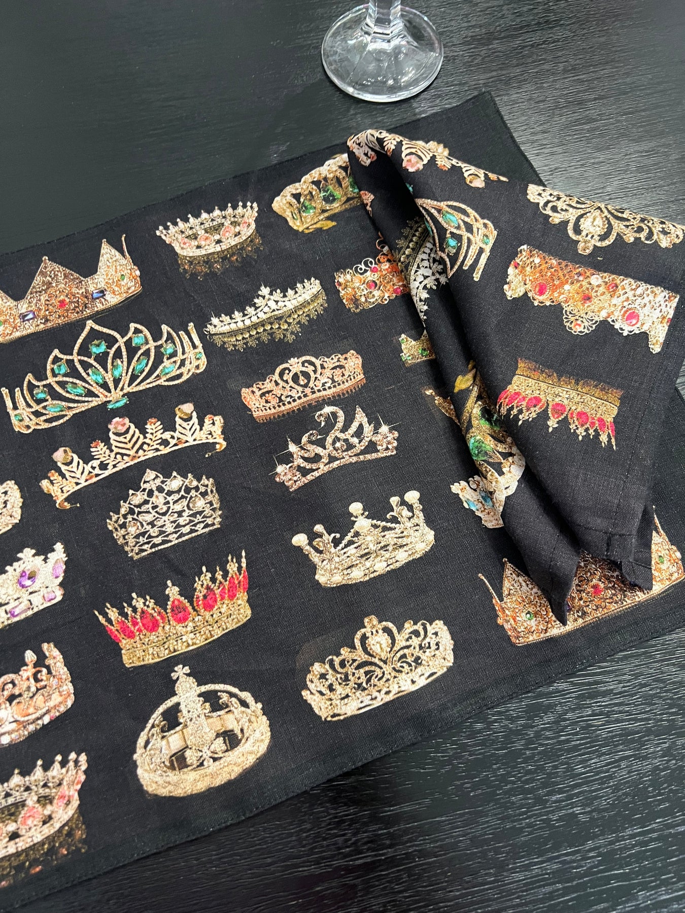 D-705 FOREVER CROWNED * NAPKIN* SETS OF FOUR  Organic Linen Napkin 16" x 16"