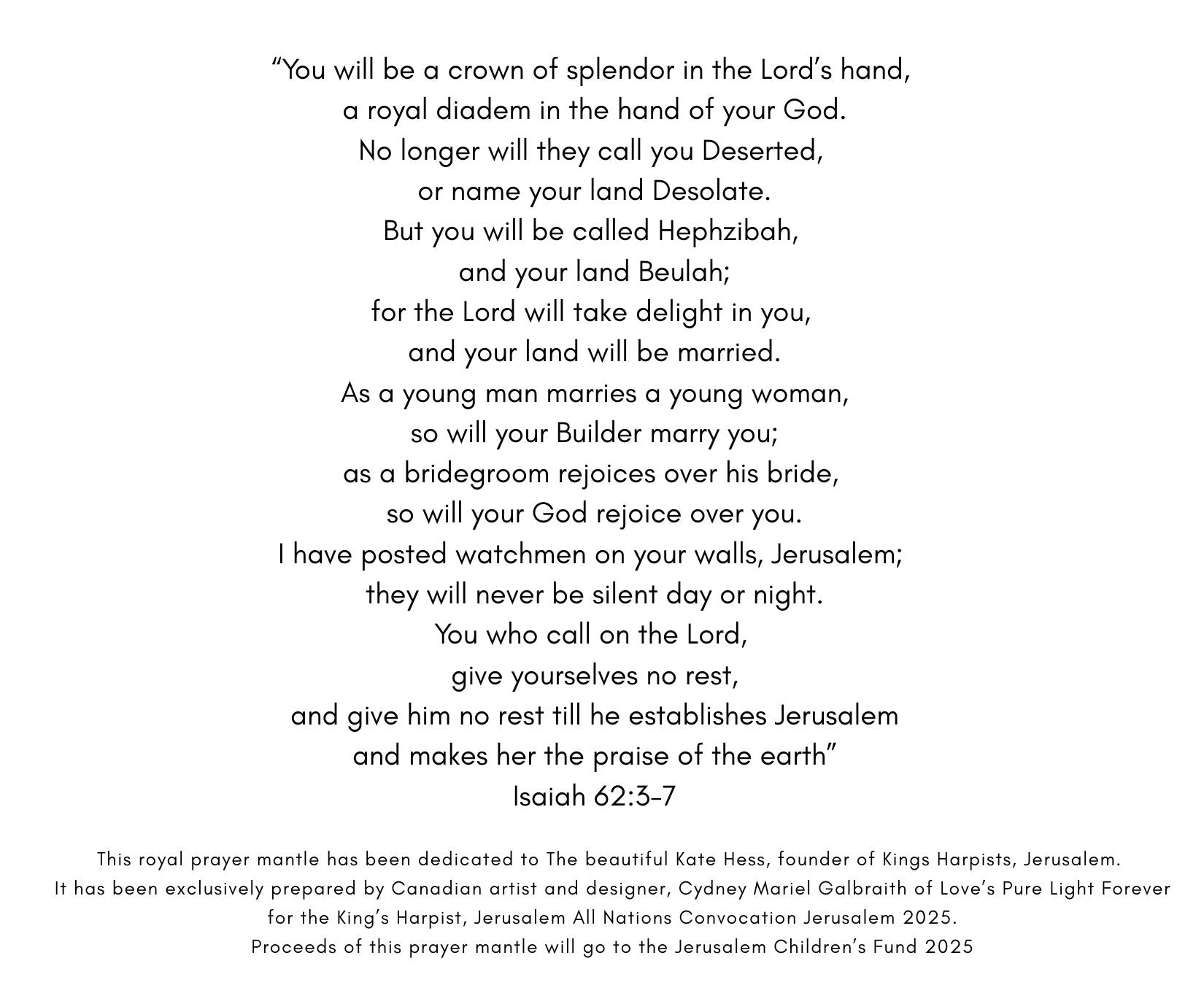 It has been exclusively prepared by Canadian artist and designer, Cydney Mariel Galbraith of Love’s Pure Light Forever for the King’s Harpist, Jerusalem All Nations Convocation Jerusalem 2025.