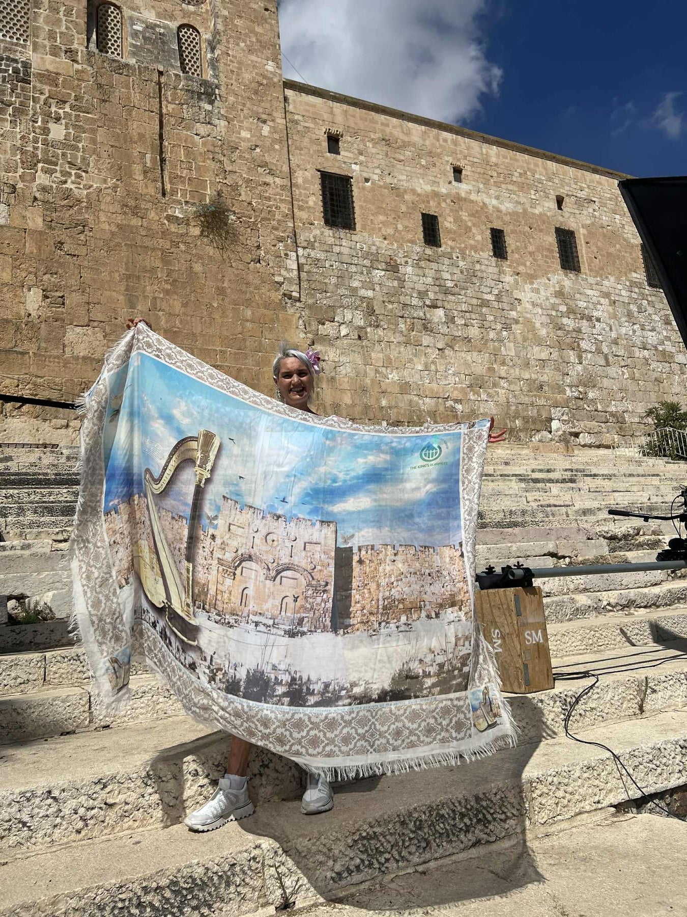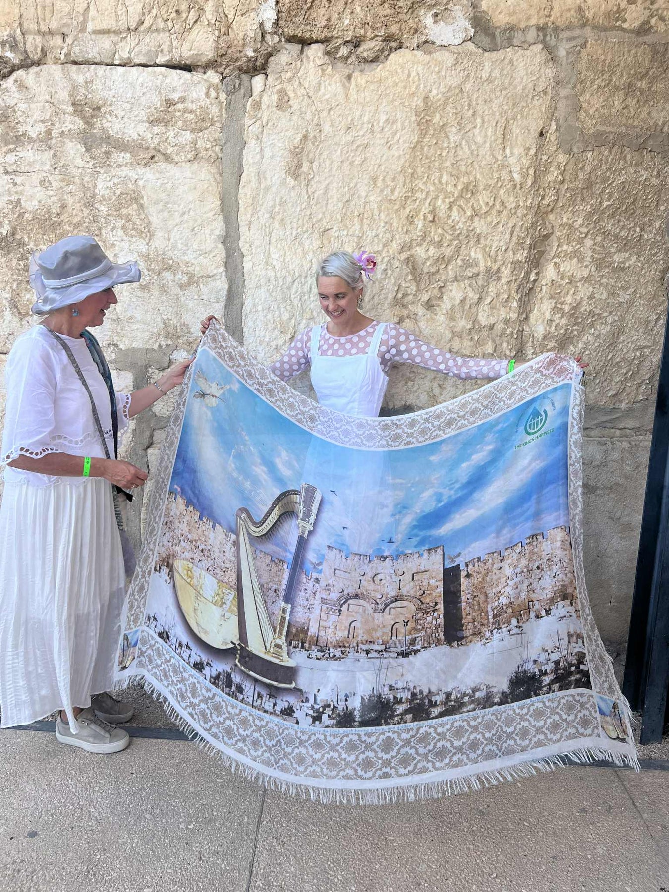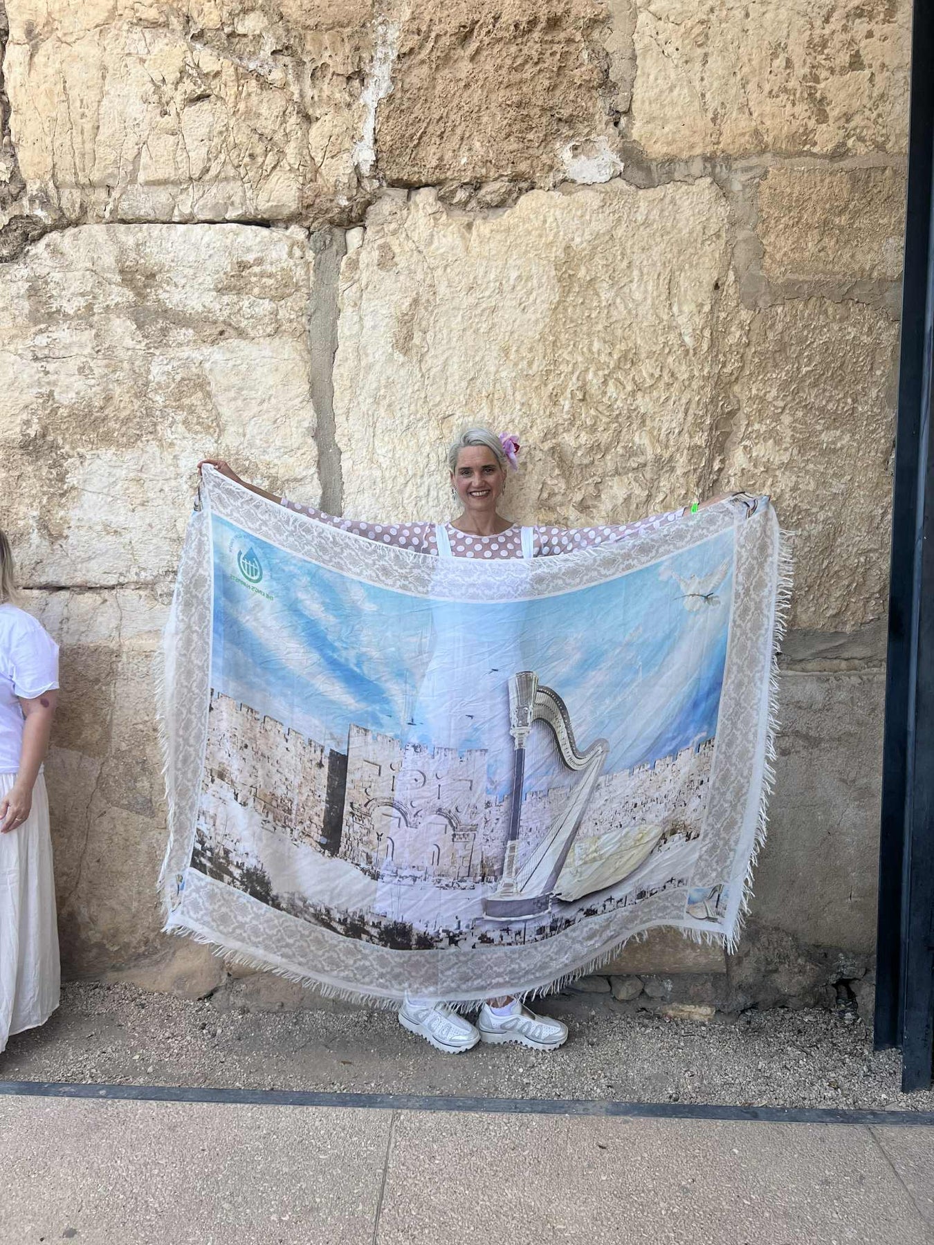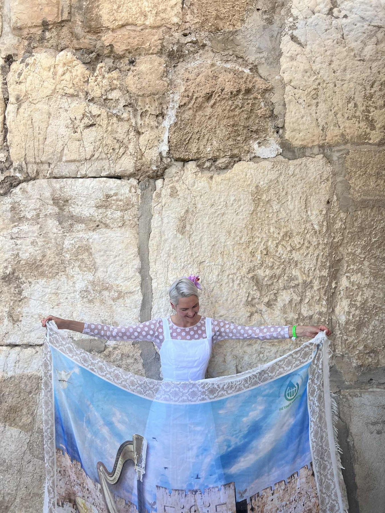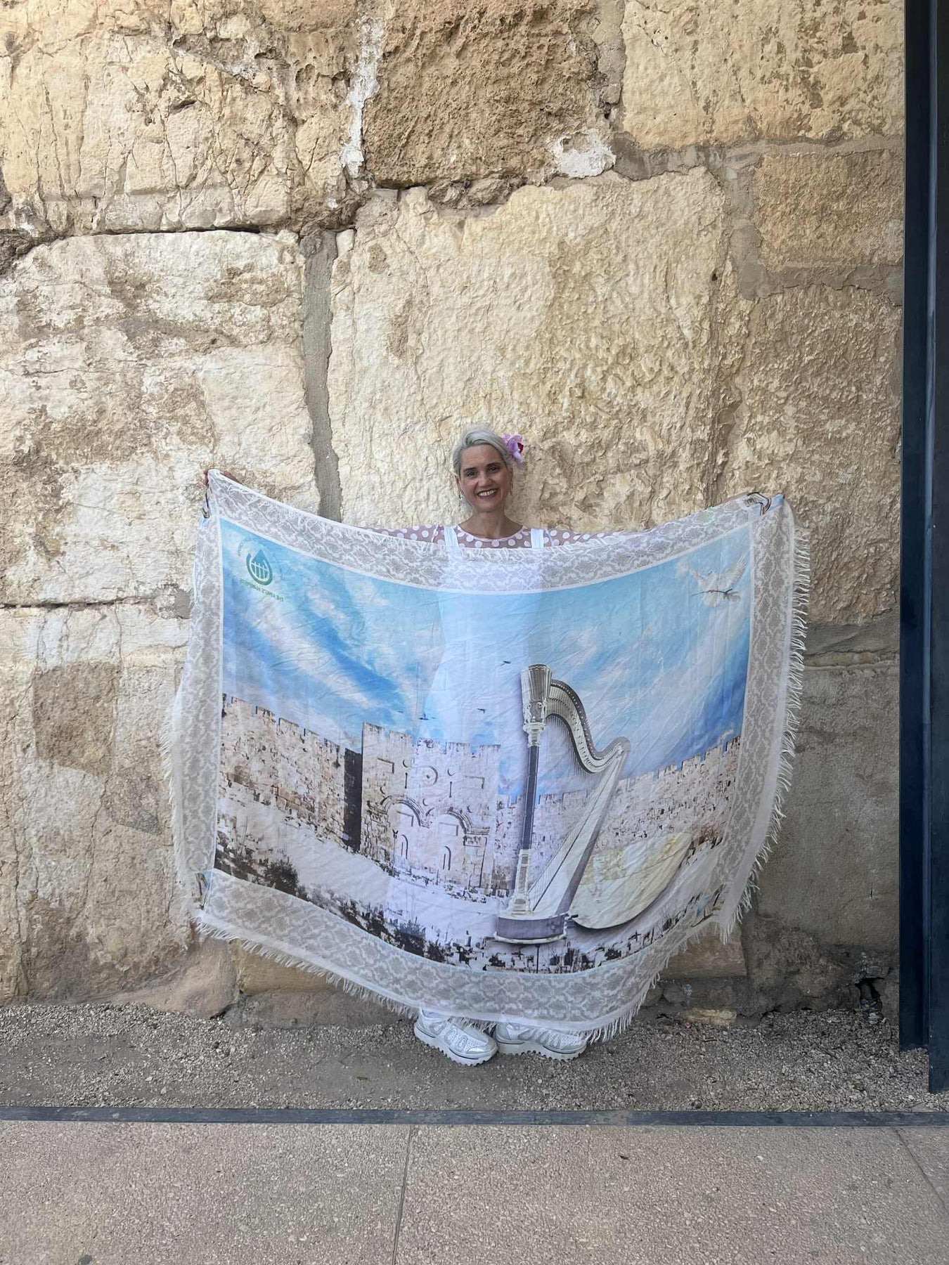 This royal prayer mantle has been dedicated to The beautiful Kate Hess, founder of Kings Harpists, Jerusalem.