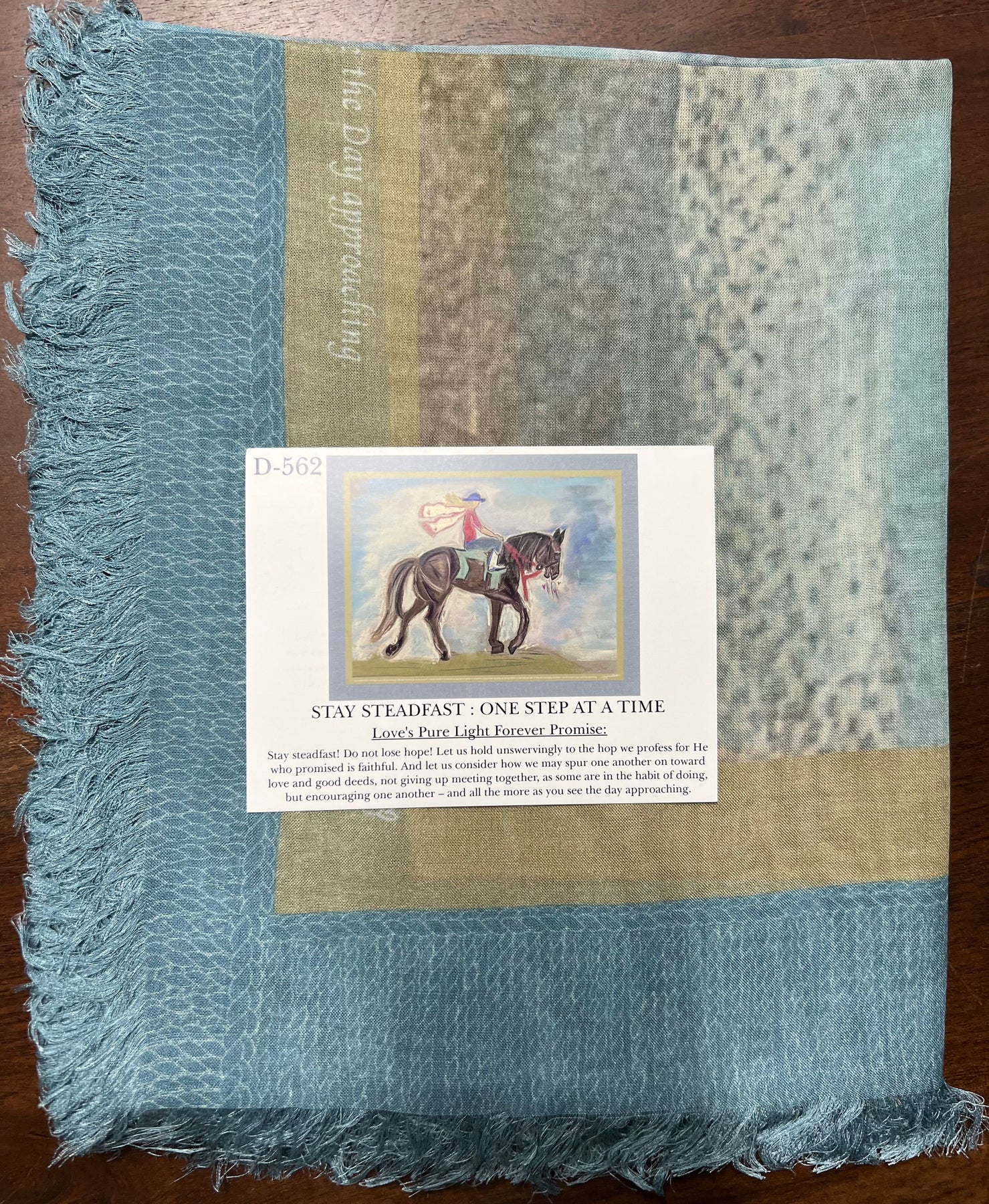 Slow is steady, and steady is fast. Fast, forward. Have you ever strived for steadfast, just to find yourself on your face? You pick yourself up, and the sun puts a smile on your face – steadfast. Friends surround you, goodness is the post of your door. The spurs are cutting deep in the flesh – fear, insecurities, shame. Maybe I am not good enough? You shake it all off. A scarf is flailing around your neck – Stay Steadfast! You have more to give than you need – it is more blessed to give than to receive. On towards the professed hope, strengthened, sustained, victorious! STEADFAST!