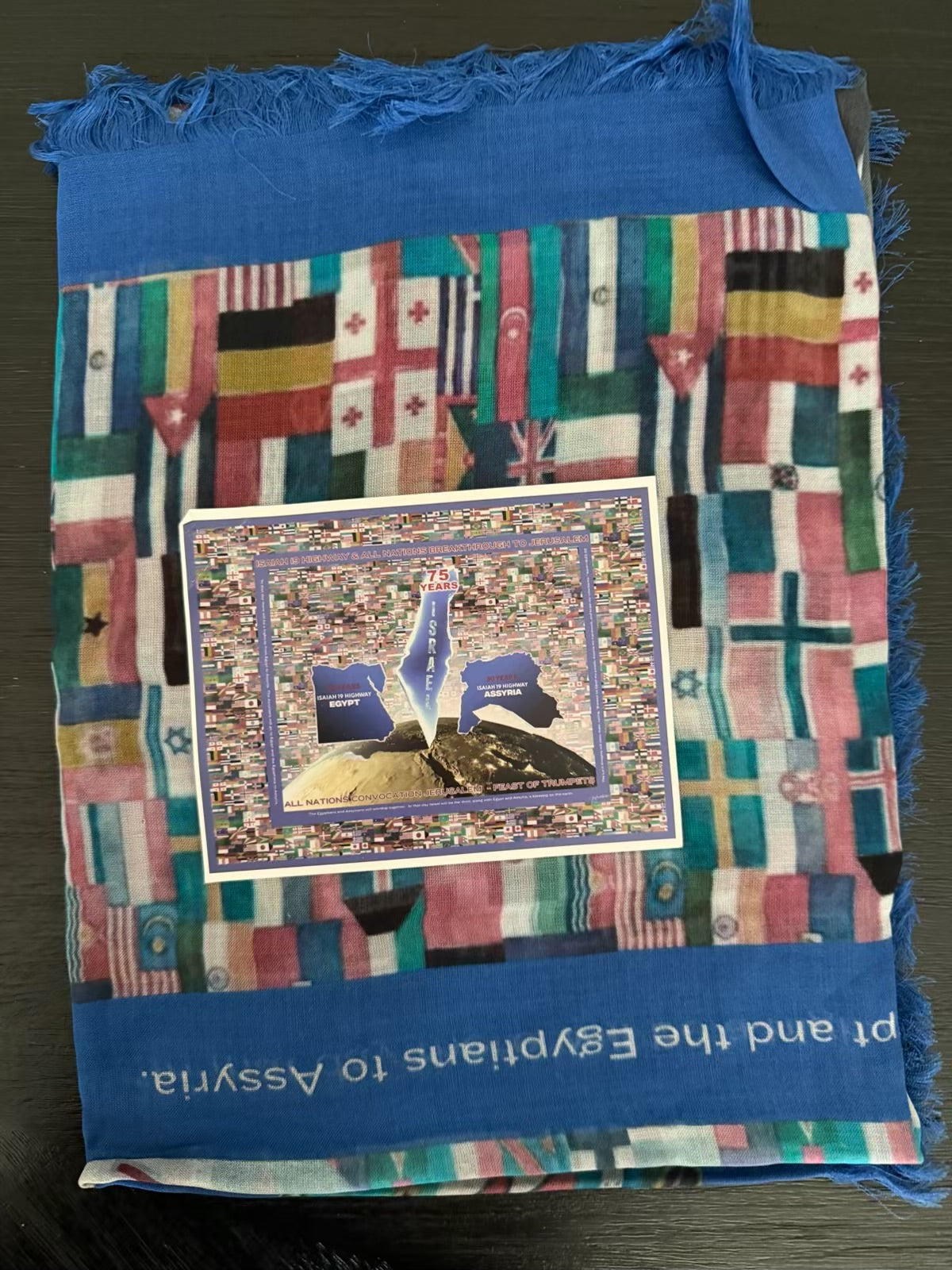 A beautiful montage of every flag of the world on it. One of our prayer shawls from Israel! Just a few for those who have a heart to pray for the nations!