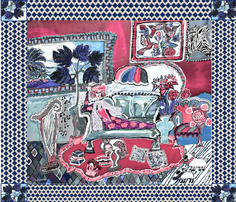 D-183 AN ORIGINAL SILK PAINTING by CYDNEY STILL WATERS, GREEN PASTURES - PSALM 23