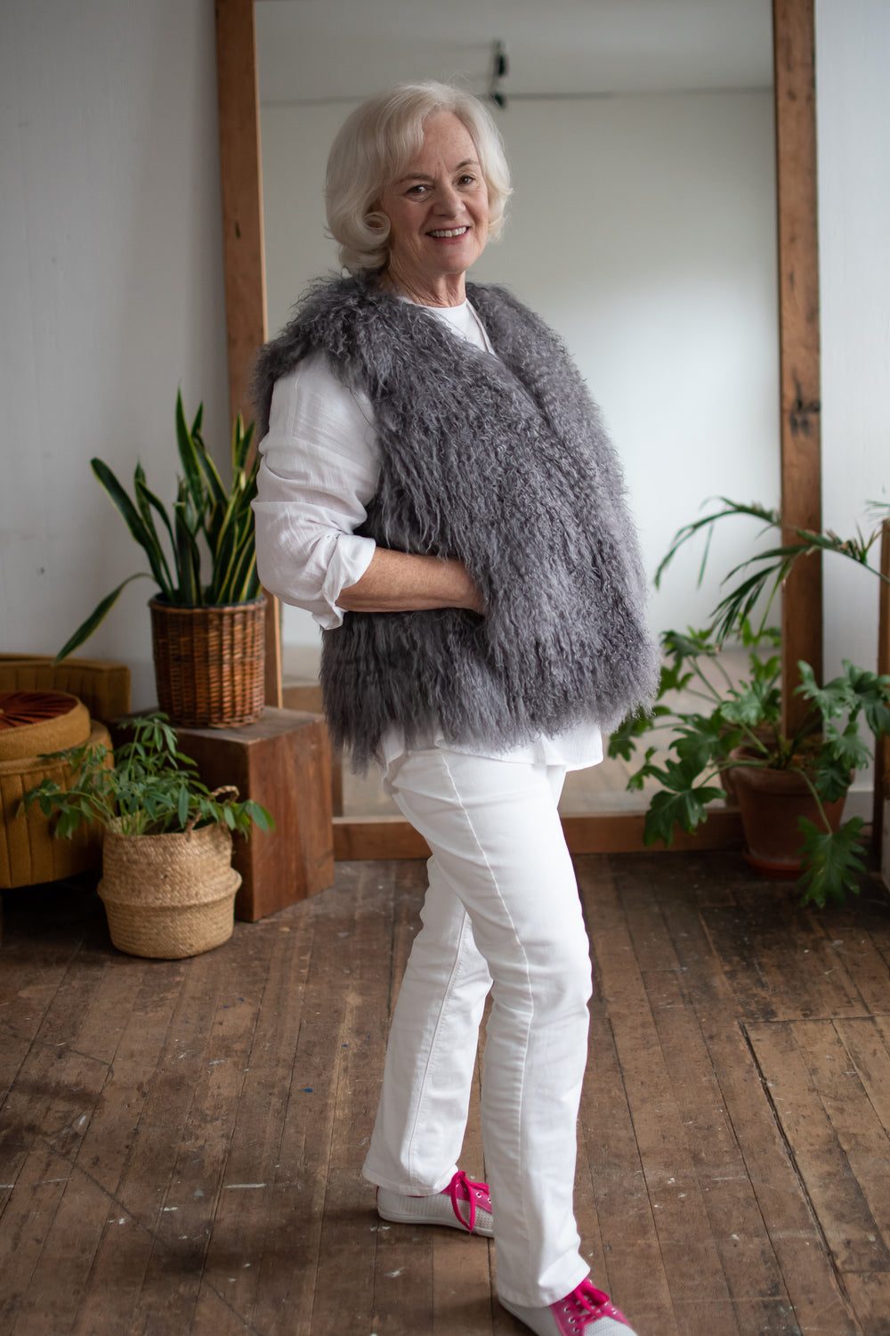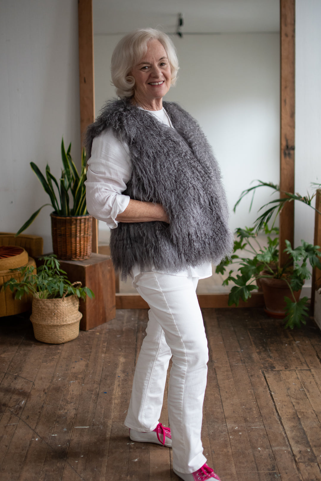 MONGOLIAN SHEEPS WOOL VEST SIZE WHITE LARGE
